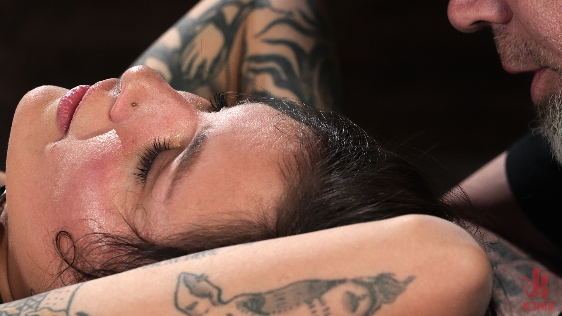 April has become a seasoned vet here at Kink, and today she flexes her abilities a little more. She begins in an inverted ankle suspension...