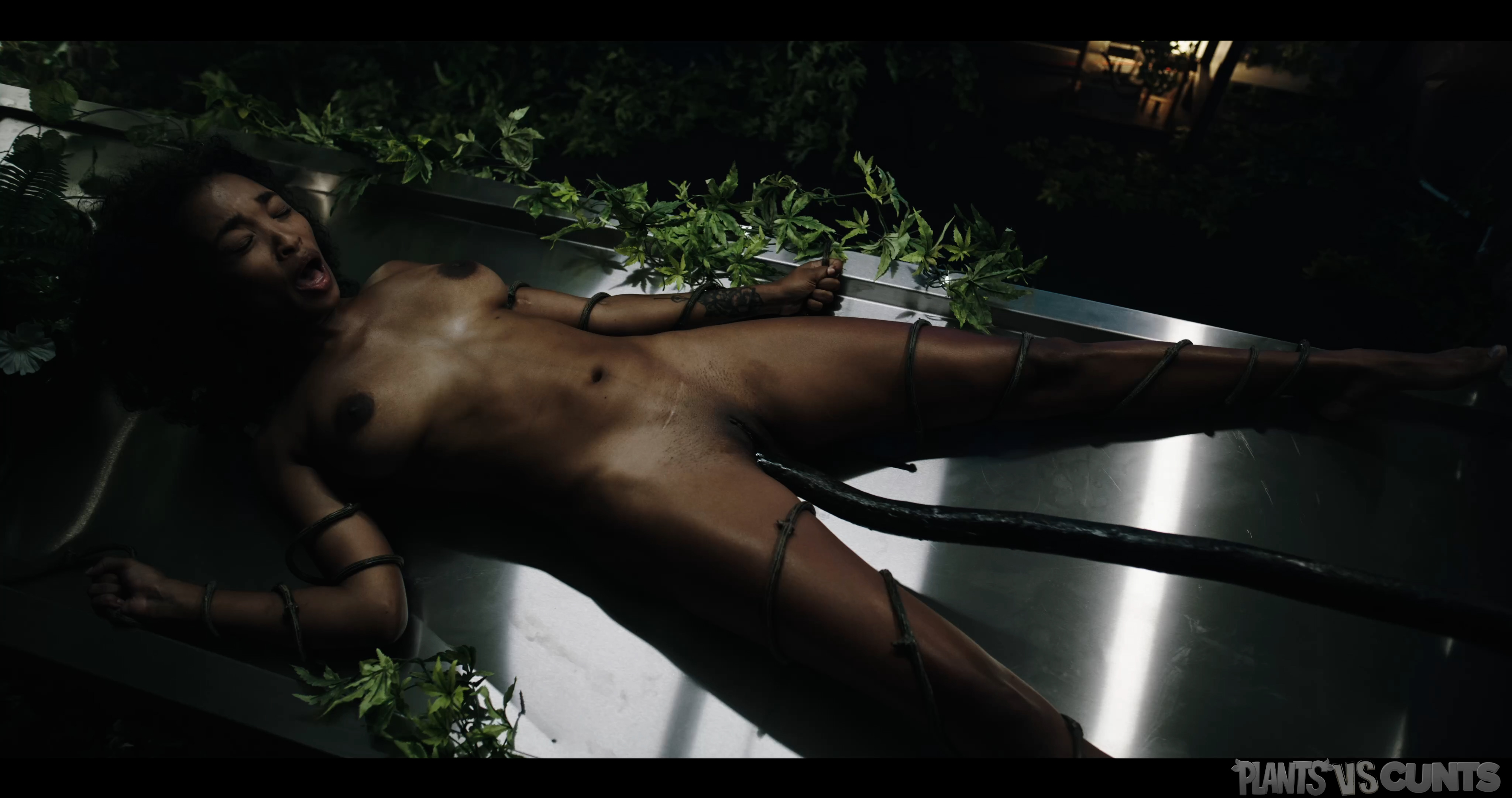 The vines wrap themselves around Barbie and position her gently on the table. There she gets fucked by the plant tentacles and even made to suck one of them until she’s gurgling on plant cum.